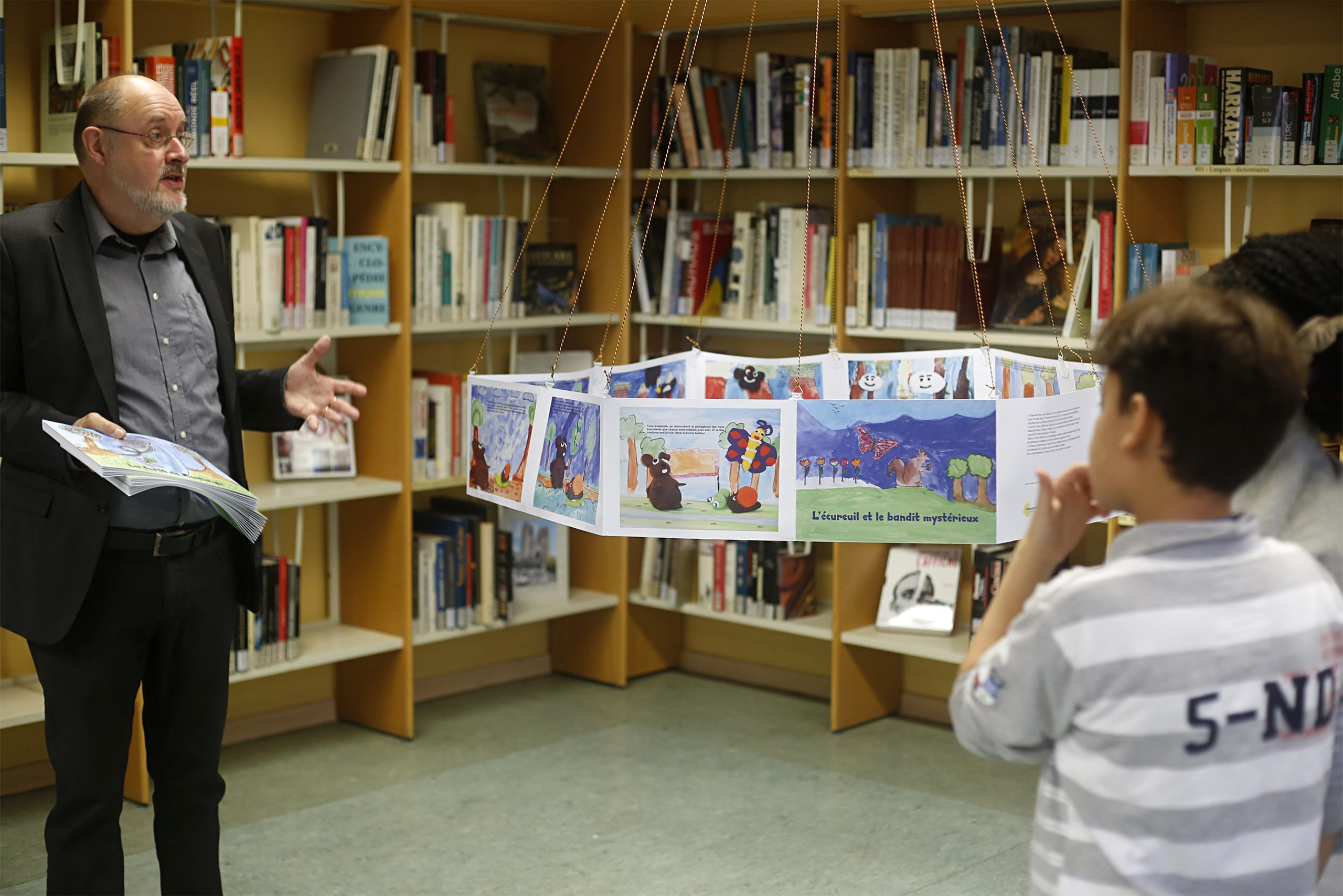 Pour nous, en période normale de notre bibliothèque, les expositions se succèdent, les visites de classes et des groupes, les bibliothécaires qui se rendent dans les écoles ou dans les associations, tout cela fait partie de notre quotidien. En fait, notre bibliothèque est en chamboulement constant. Nous sommes toujours à la recherche de plus d’espace. Aujourd’hui, nous réaménageons dans les réserves un espace pour faire les animations avec les enfants, pour les ateliers d’écriture et des formations à destination des associations, etc.
