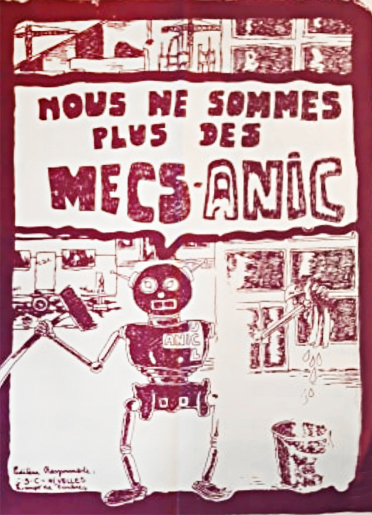 Les travailleuses de la société de nettoyage ANIC se rebellent contre leur patron concernant leurs conditions de travail. Elles sont payées 78 francs de l’heure alors que le tarif normal est de 102 francs de l’heure ; leurs frais de déplacements ne sont pas remboursés ; si elles cassent du matériel, le montant de celui-ci est retenu sur leur salaire ; elles n’ont pas de tenue de travail fournie par l’employeur ; enfin, certaines travaillent plusieurs mois sans avoir encore signé leur contrat.