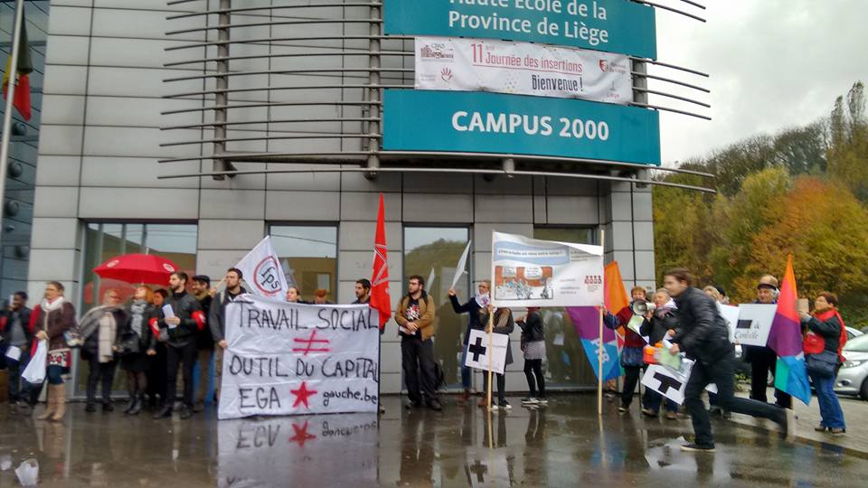 La figure du travailleur social est double. Elle est celle d’un professionnel exerçant des compétences de plus en plus pointues dans les grandes administrations et institutions de la sécurité sociale (parastataux, hôpitaux, etc.). Mais c’est aussi celle d’un acteur engagé dans la construction du collectif. Ils sont nombreux à être employés dans des organisations porteuses de mouvements sociaux telles que, par exemple, les syndicats de travailleurs. Les points de vue sont cependant diversifiés. La pensée critique de l’époque, d’inspiration marxiste, envisage davantage le travail social comme une forme de béquille du capitalisme.