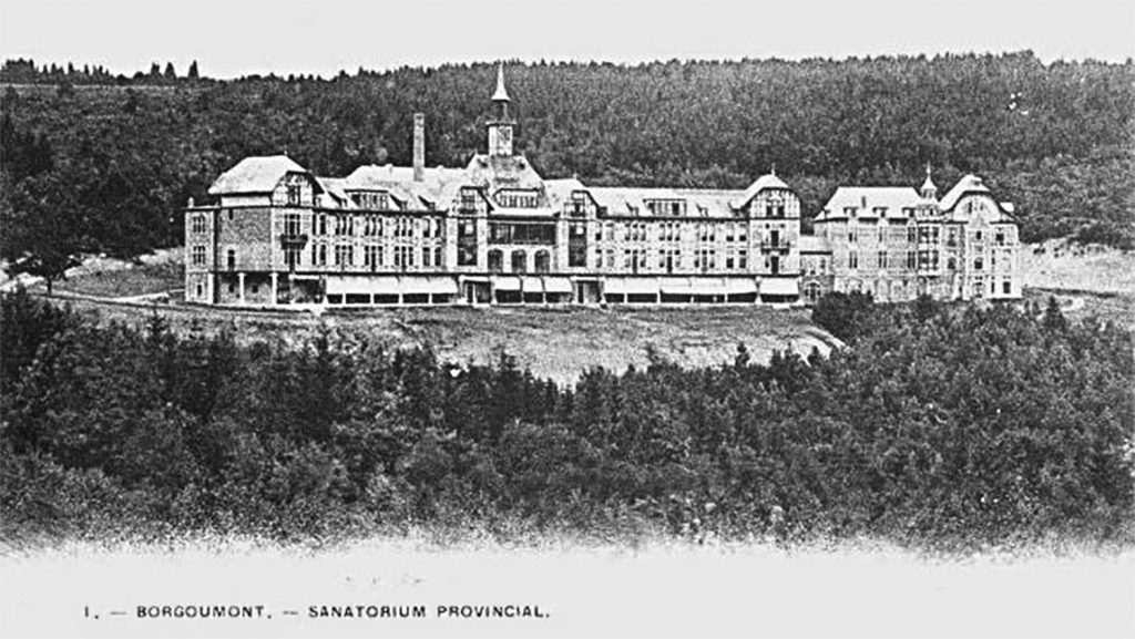 En 1888, l’industriel et homme politique libéral, Georges Montefiore-Levi , qui a créé à Esneux un centre d’accueil pour enfants convalescents en 1886, ouvre un sanatorium à Borgoumont près de La Gleize (Stoumont). Repris par le conseil provincial de Liège en juillet 1899, le centre relance officiellement ses activités le 13 septembre 1903. Peu après, une disposition testamentaire de Georges Montefiore-Levi alloue aux sociétés mutualistes toutes tendances confondues, pendant 27 ans, une somme annuelle de 36 000 francs afin de permettre à leurs membres tuberculeux de suivre une cure à prix réduit.