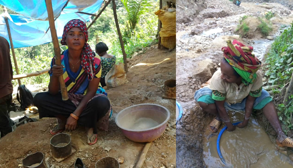 Dans une étude en 2017, le Centre d’Expertise en Gestion Minière (CEGEMI)[12] tente de comparer le travail des femmes et des hommes dans trois types de sites miniers : Kamituga, Rubaya et Mongbwalu.[13]