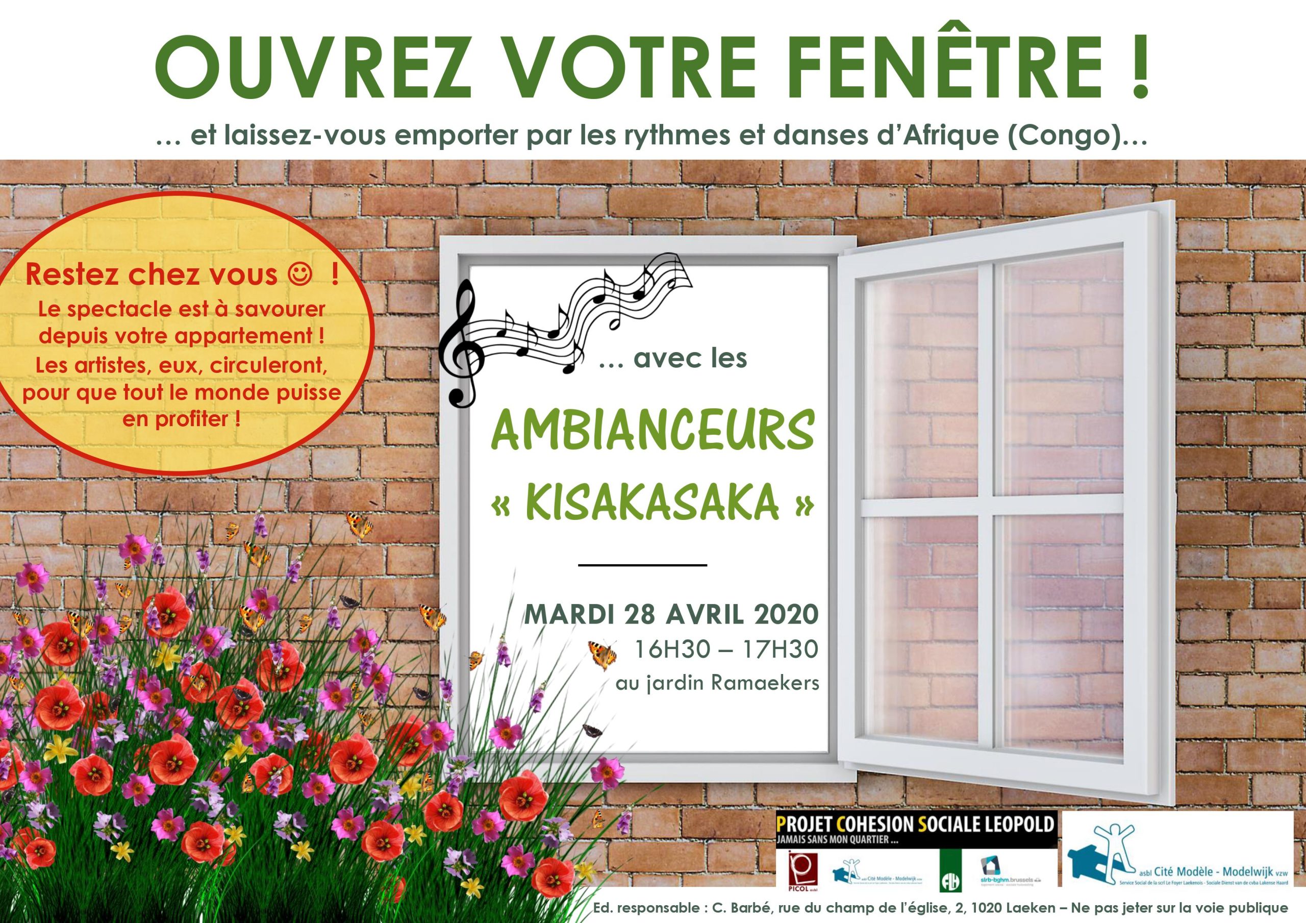 Cette expérience a été magnifique. Les autorisations ? Personne ne savait ce qu’il fallait faire. Personne ne savait si c’était autorisé ou non. J’appelle le Foyer laekenois via son service social parce que cela se déroule sur son site. Le directeur me soutient et m’accorde son partenariat : il trouve l’idée superbe. La date est fixée et on voit ce que cela donne. Nous imprimons nos flyers et invitons les habitants à être à leur fenêtre, tel jour, telle heure.