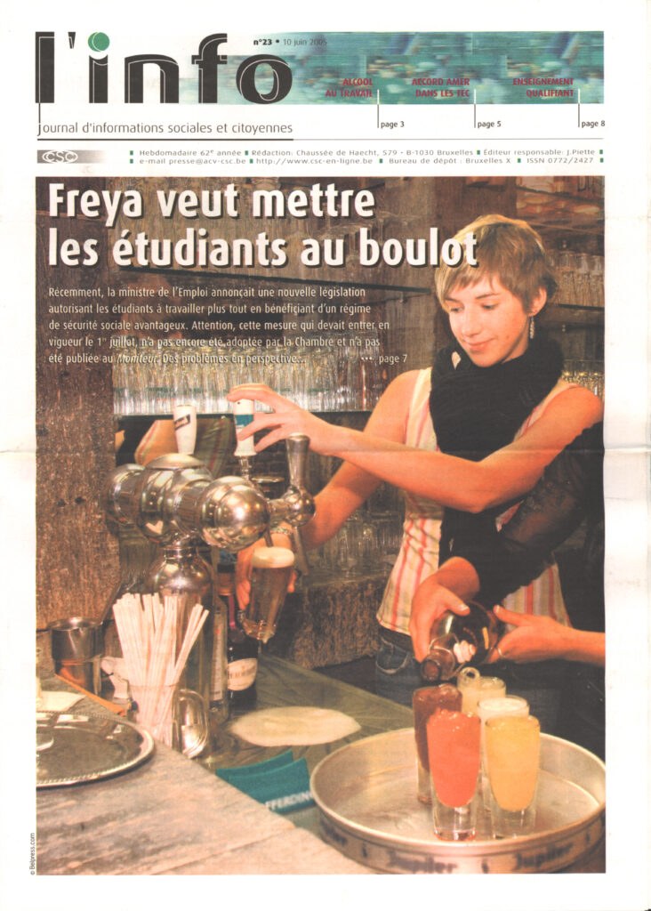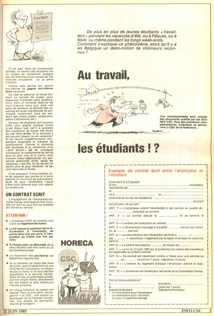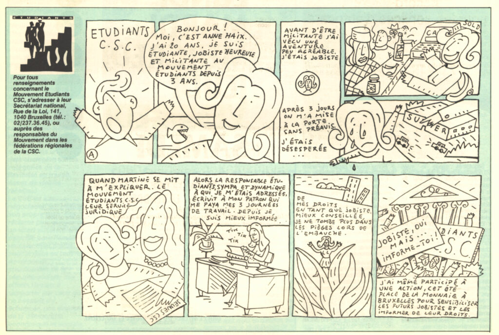 Le journal de la CSC, Info CSC, consacre régulièrement une page pour informer les étudiants jobistes