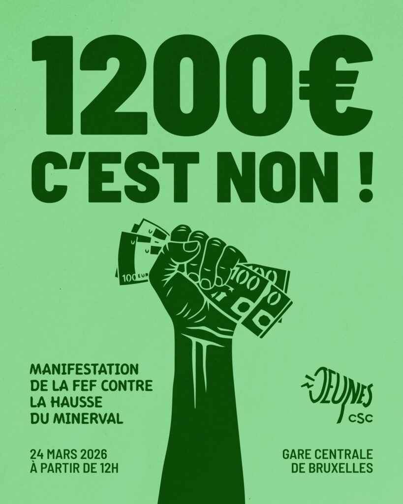 La question du coût des études est prise en considération par les Jeunes CSC qui dénoncent la décision de la Fédération Wallonie-Bruxelles d’augmenter le minerval à la rentrée académique 2026-2027. Cette nouvelle mesure ne peut qu’aggraver la précarité étudiante. C’est donc une jeunesse unie qui se mobilise autour de cette réforme mais aussi plus largement autour de la question du coût des études.