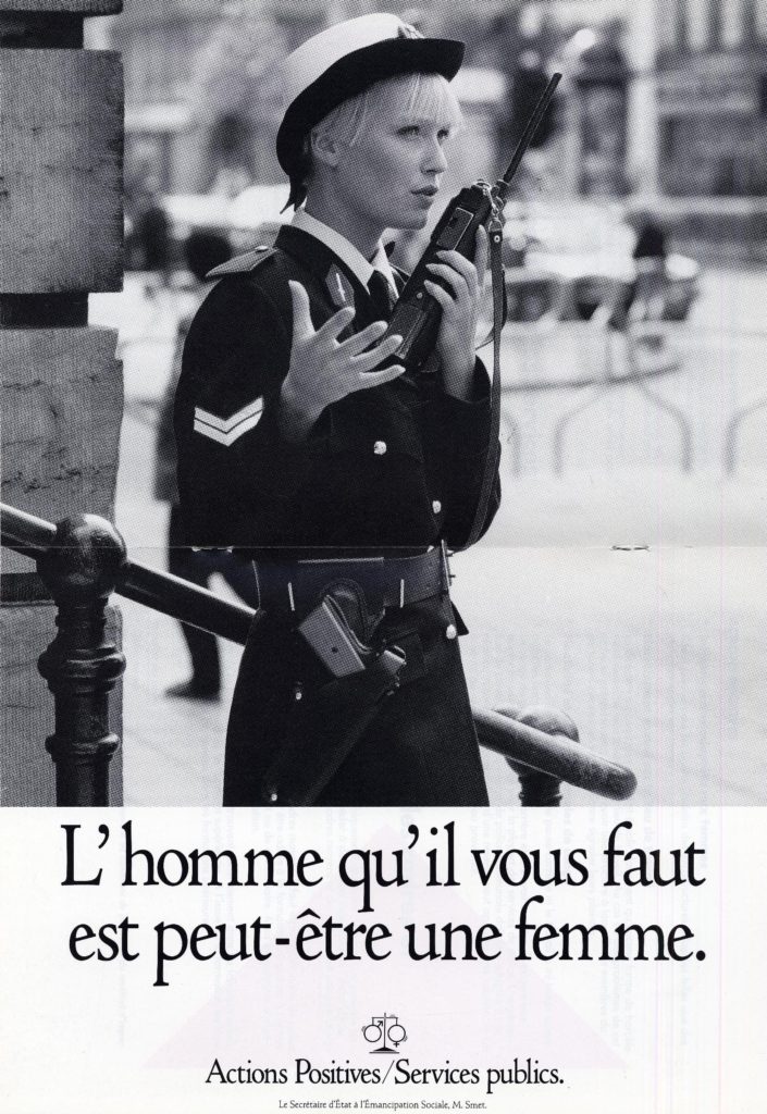 Au premier abord, le travail social et le travail de police ne semblent pas compatibles. En effet, l’institution policière est souvent définie par sa fonction répressive, aux antipodes de la prévention.[4] Néanmoins, au fil du 20e siècle, les policiers questionnent l’aspect social de leur travail. Un des temps forts de ce tournant social est l’arrêté royal du 28 janvier 1953 instituant des postes féminins dans les parquets judiciaires. Cette présence féminine se limite aux affaires de mœurs « tant qu’il s’agit de femmes et d’enfants ».