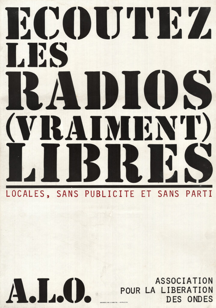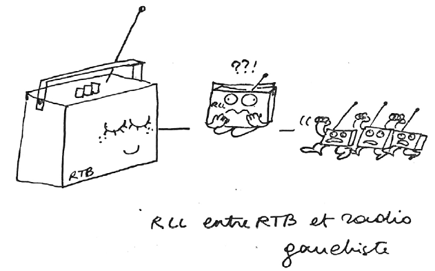 – La dépénalisation des radios libres et non la législation. Une loi est par essence une limite à la liberté. Cela veut dire que nous ne demandons pas une législation (une loi) restrictive, mais la mise à la disposition de tous ceux qui veulent s’exprimer par la voie des ondes, d’une gamme de fréquences non occupées. Approuvée par Radio Andenne-irradiée, Radio Louvain-la-Neuve, Radio Brol, Radio Actif, Radio 102 ULB, Radio Tourinnes, Radio Plus, Radio Verte à Bruxelles, le 14 janvier 1979. Source : La revue nouvelle, n° 1, janvier 1980, p. 30.