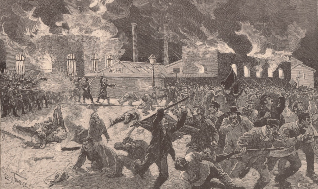 Le 18 mars 1886, à Liège, un petit groupe d’anarchistes organise une manifestation pour célébrer le quinzième anniversaire de la Commune de Paris. Le Bourgmestre, Julien d’Andrimont, évalue mal l’ampleur possible de l’événement et donne son autorisation. Or, ce ne sont pas quelques dizaines mais plus d’un millier de personnes qui se rassemblent sur la place Saint-Lambert. Semblant anecdotique au préalable, cette manifestation est l’étincelle qui met le feu aux poudres et enflamme, en quelques jours, l’ensemble des bassins industriels belges.