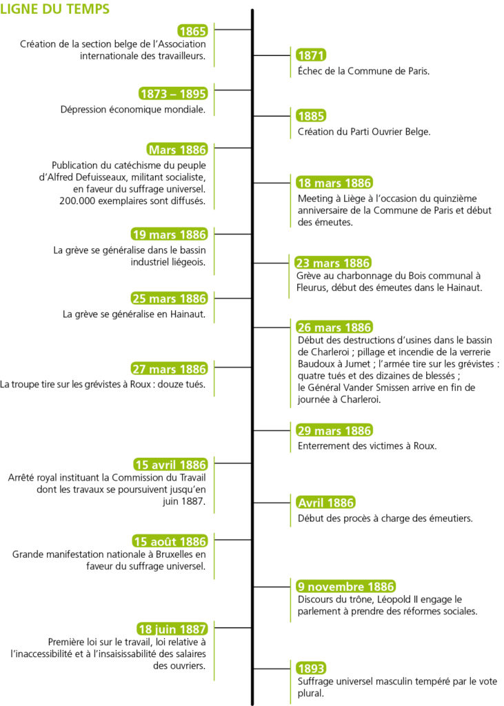 Que se passe-t-il en 1886 en Belgique pour que la colère populaire s’exprime dans la violence ? Quelles en sont les conséquences sur le monde politique ? Qu’est-ce que « la question sociale » ?