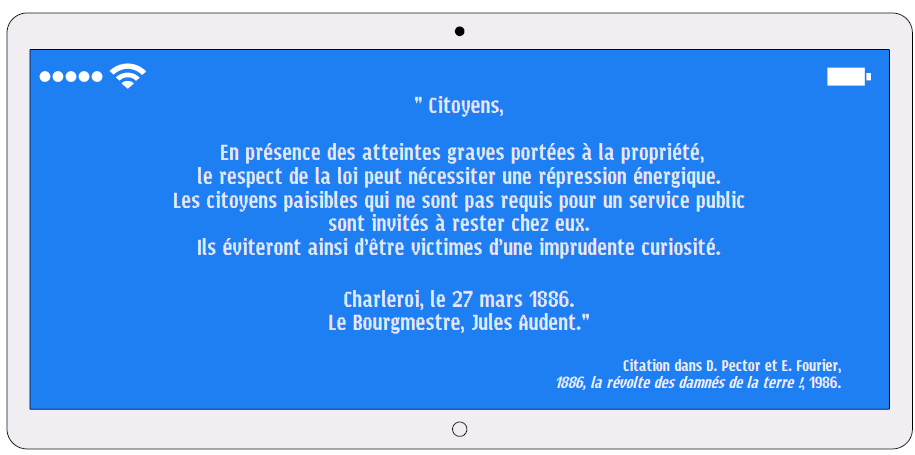 Demol, N., Gerardi, L., « Les révoltes de 1886 et ka grande enquête sur la "question sociale" en Belgique », Dynamiques. Histoire sociale en revue, n°10, septembre 2019, mis en ligne le 24 octobre 2019. URL : http://www.carhop.be/revuescarhop/
