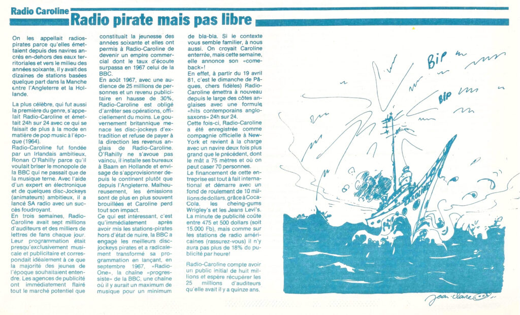 C’est en 1978 que se font entendre, pour la première fois depuis l’instauration en 1945 d’un monopole de fait au bénéfice des instituts publics de radiodiffusion, des radios établies en Belgique (et non plus en mer, comme la mythique Radio Caroline) et émettant sur la bande FM (fréquence modulée). Elles s’autoproclament « radios libres » ou « radios locales », selon leur degré d’engagement militant ou… commercial.
