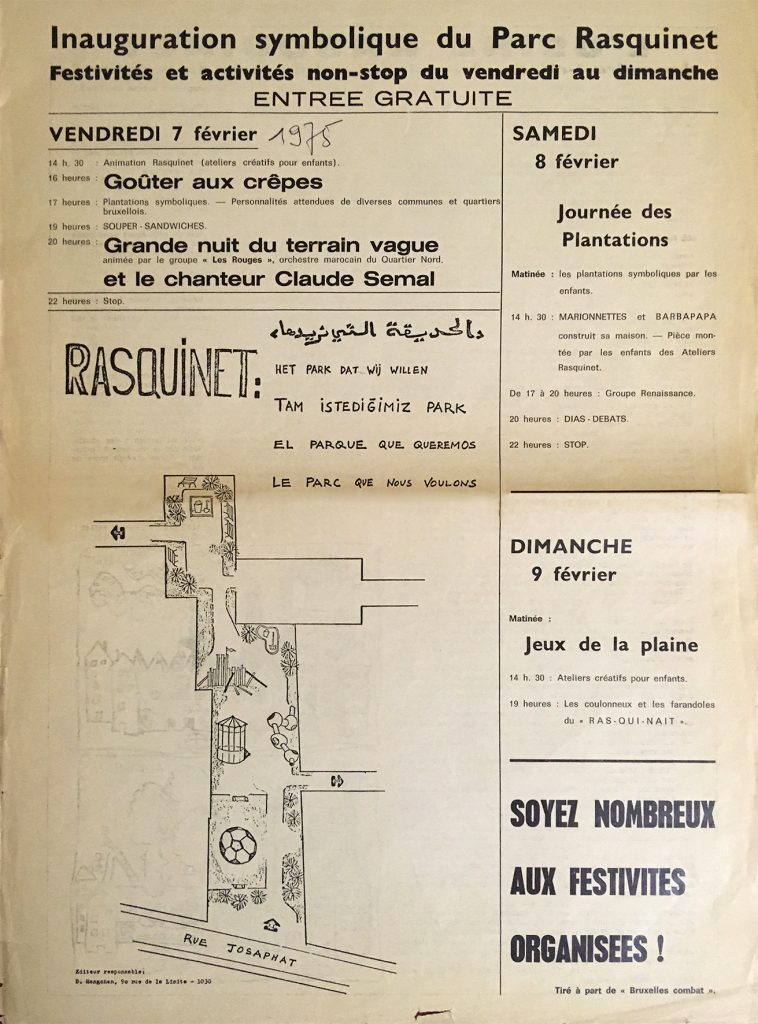 [31] Massart P., « Rasquinet, ses origines », [2001] ; « Le Rasquinet : une plaine de jeux dans un quartier populaire, 25 ans de lutte urbaine », L’