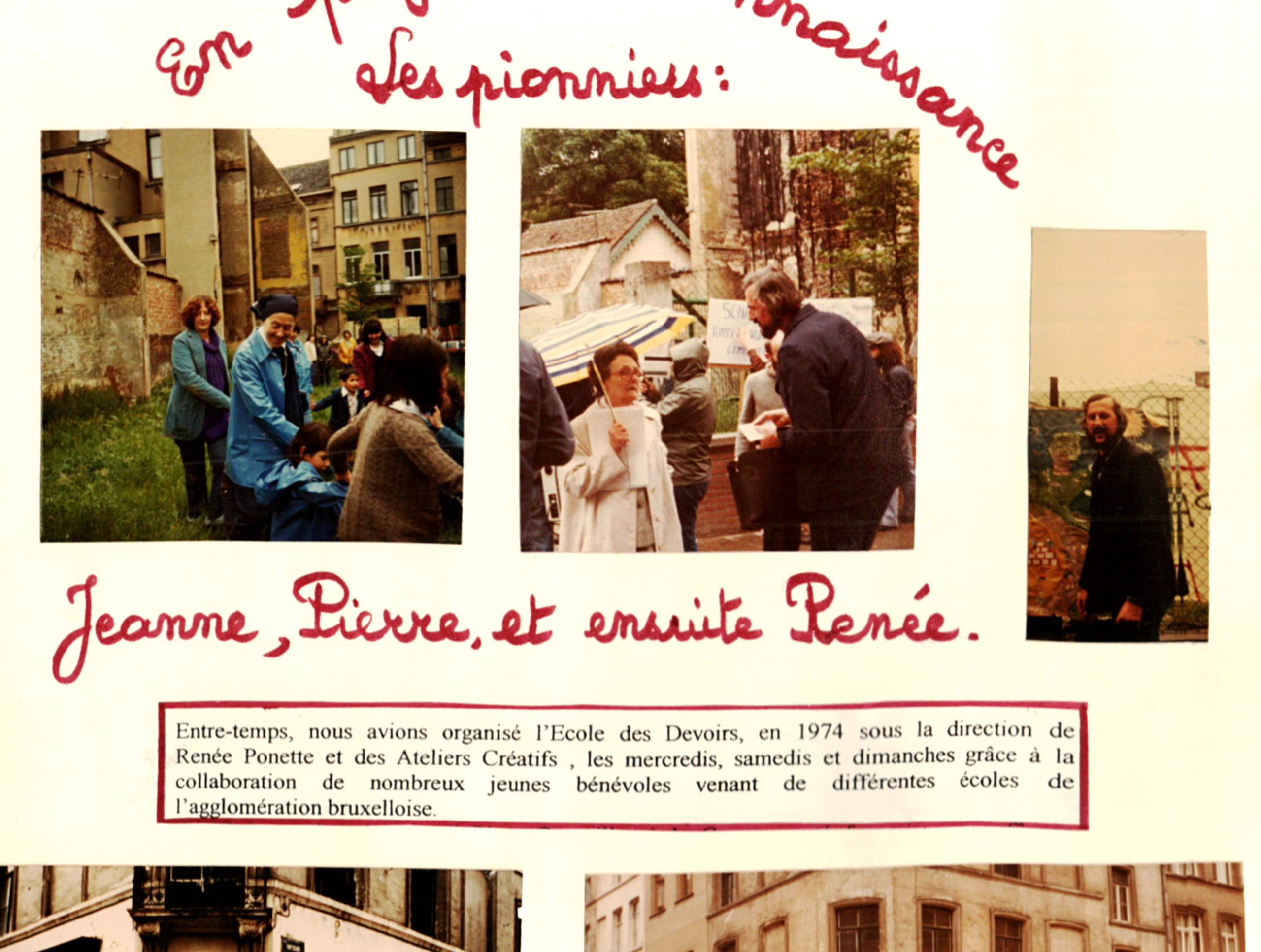 L’aventure Rasquinet commence comme club de rue et bibliothèque de rue (1972), centre d’expression et de créativité (1973) et d’école de devoirs (1974). Voir Pierre Massart & l’aventure Rasquinet. Deuxième partie : Du club des rues à l’école de devoirs