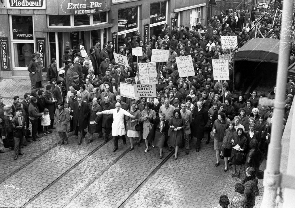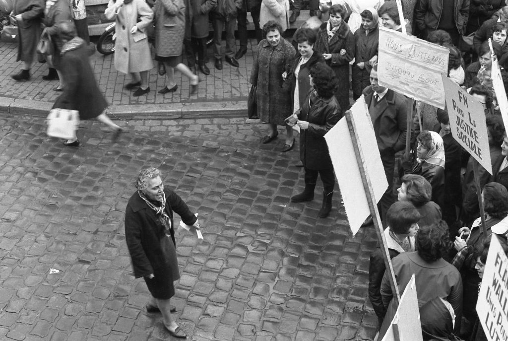 Et c’est bien vrai qu’elles arrivent, de tous les coins de l’usine, elles accourent, entourant leurs camarades de Liège. Elles empoignent les deux calicots et s’en vont en cortège vers une autre division de l’usine : le département électronique. Là les délégués refusent l’entrée des locaux ; mais quelques centaines de femmes en grève, cela s’entend ! Après une heure de discussions et de cris, les ouvrières de l’électronique sortent à leur tour sous les acclamations de leurs camarades. Et elles sont 800 environ à prendre le chemin de Charleroi. Tout au long du cortège, on chante Le travail, c’est la santé. Et c’est le défilé à travers les rues les plus animées du centre[16] ». Ces détails nous enseignent, avec le talent du journaliste en plus, comment naissent des solidarités et de là, des petits ou grands combats pour la justice sociale.