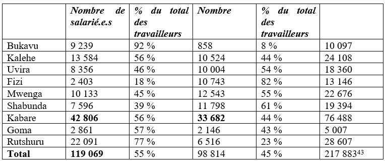 Tableau 3 : Répartition des travailleurs et travailleuses salarié.e.s et indépendant.e.s par territoires du Sud-Kivu, Goma et Ruthsuru en 1955-1957